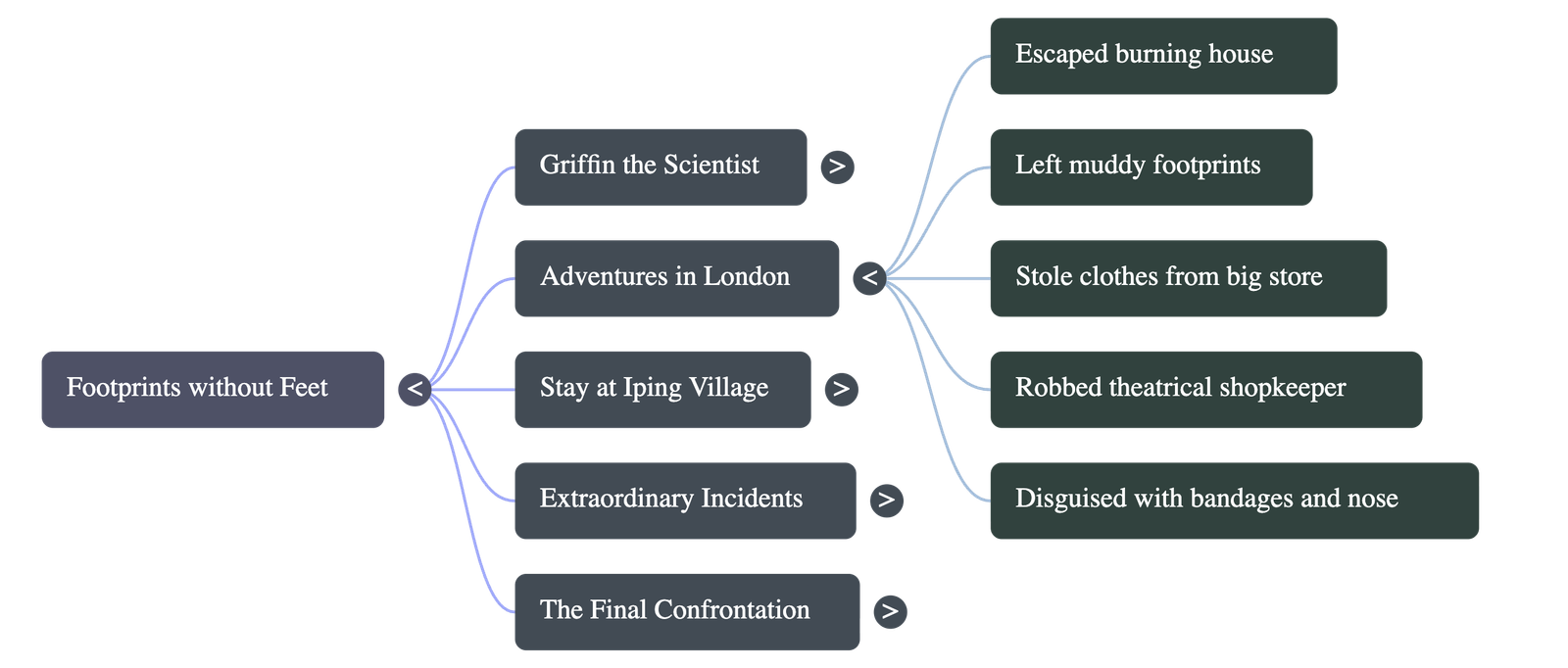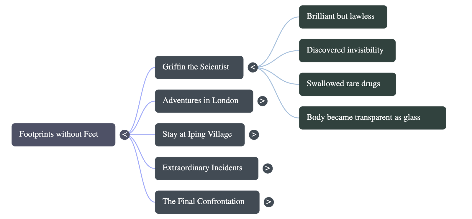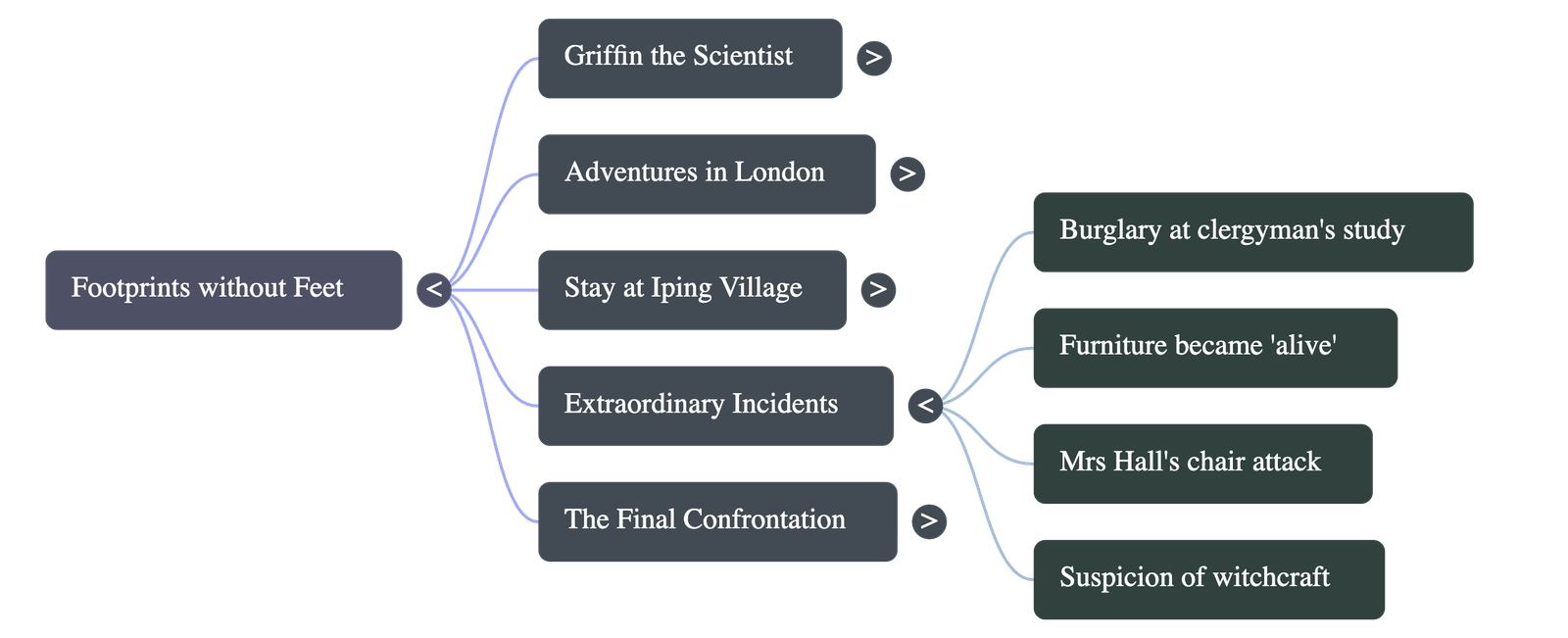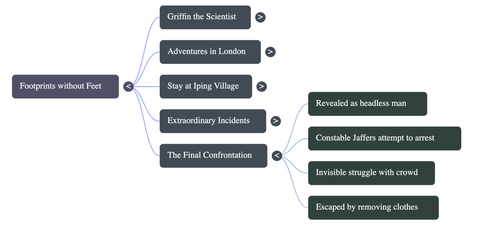 - The local constable, Mr. Jaffers, arrived to arrest him, leading to a chaotic struggle as Griffin removed his clothes piece by piece to become invisible.