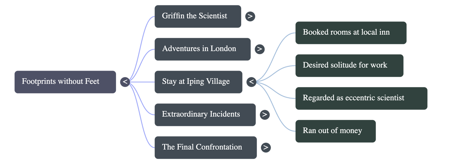 - Griffin moved to the village of Iping to escape the city, staying at an inn owned by Mrs. Hall, where his eccentric appearance and irritable behavior caused much curiosity.