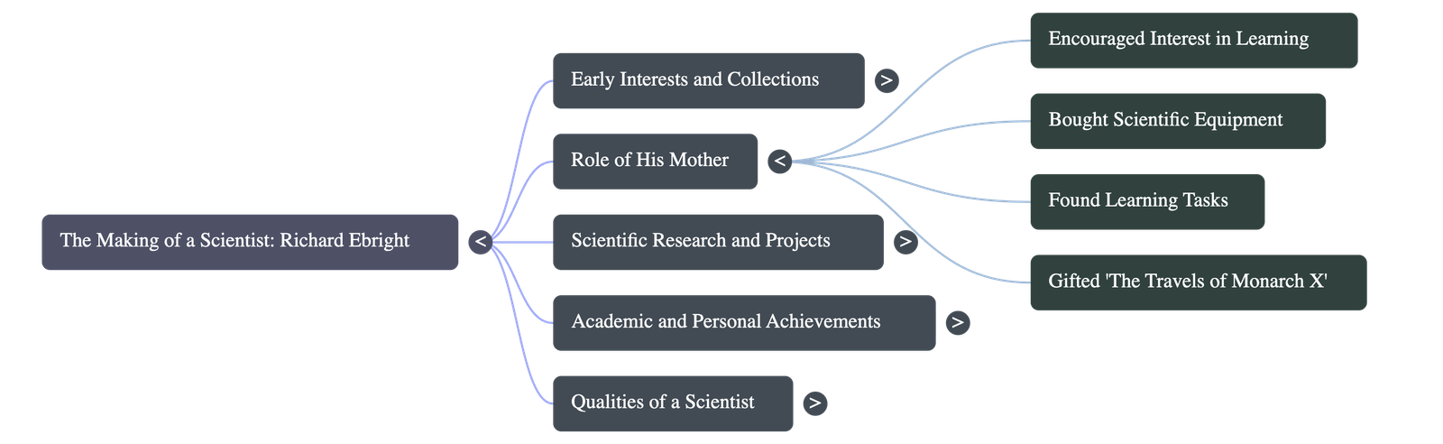 - His mother played a pivotal role in his development, encouraging his curiosity by providing him with telescopes, microscopes, cameras, and educational trips.