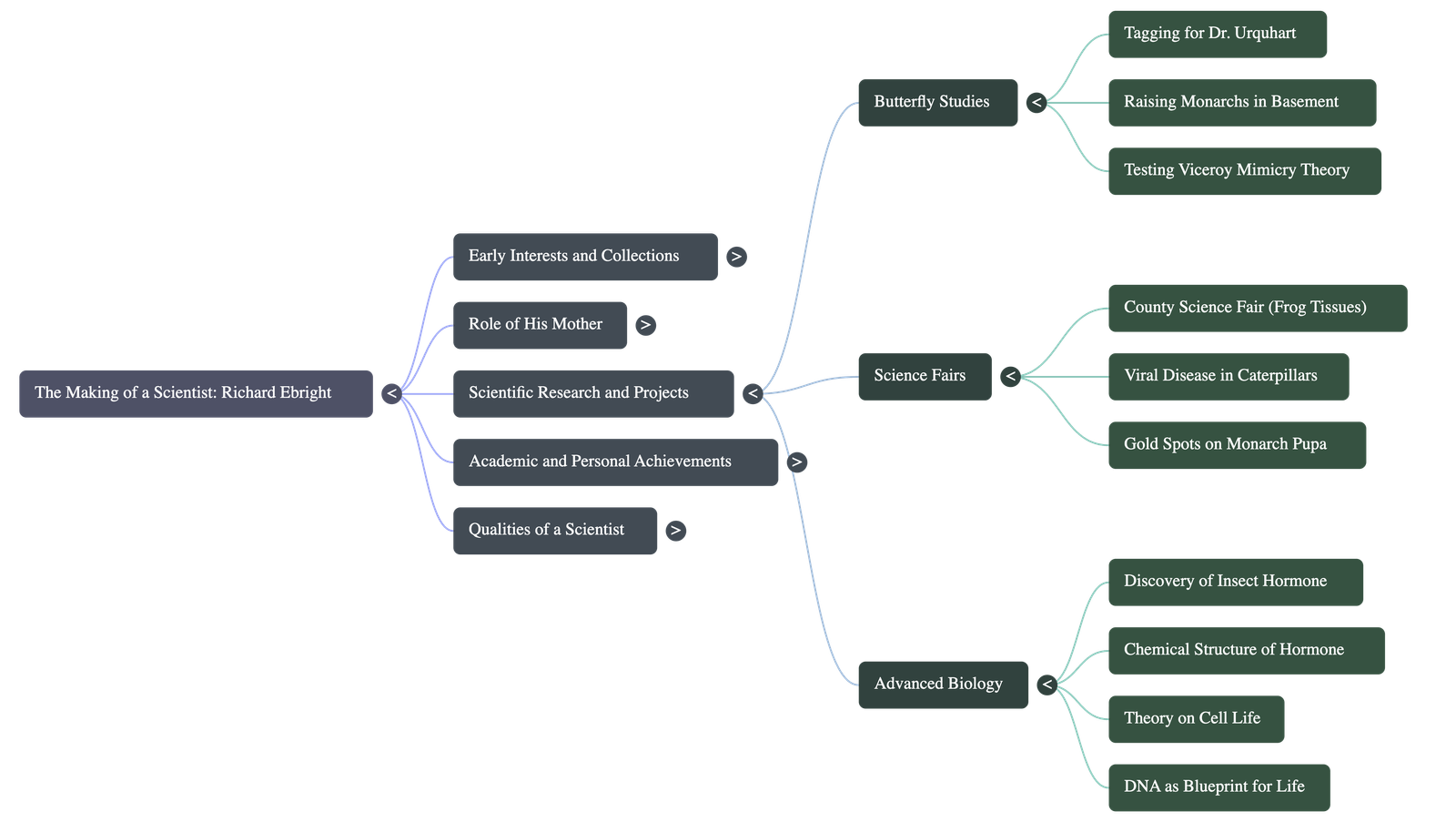 - Viceroy Mimicry: He later tested the theory that viceroy butterflies mimic monarchs to avoid being eaten by birds, earning top honors in the zoology division.