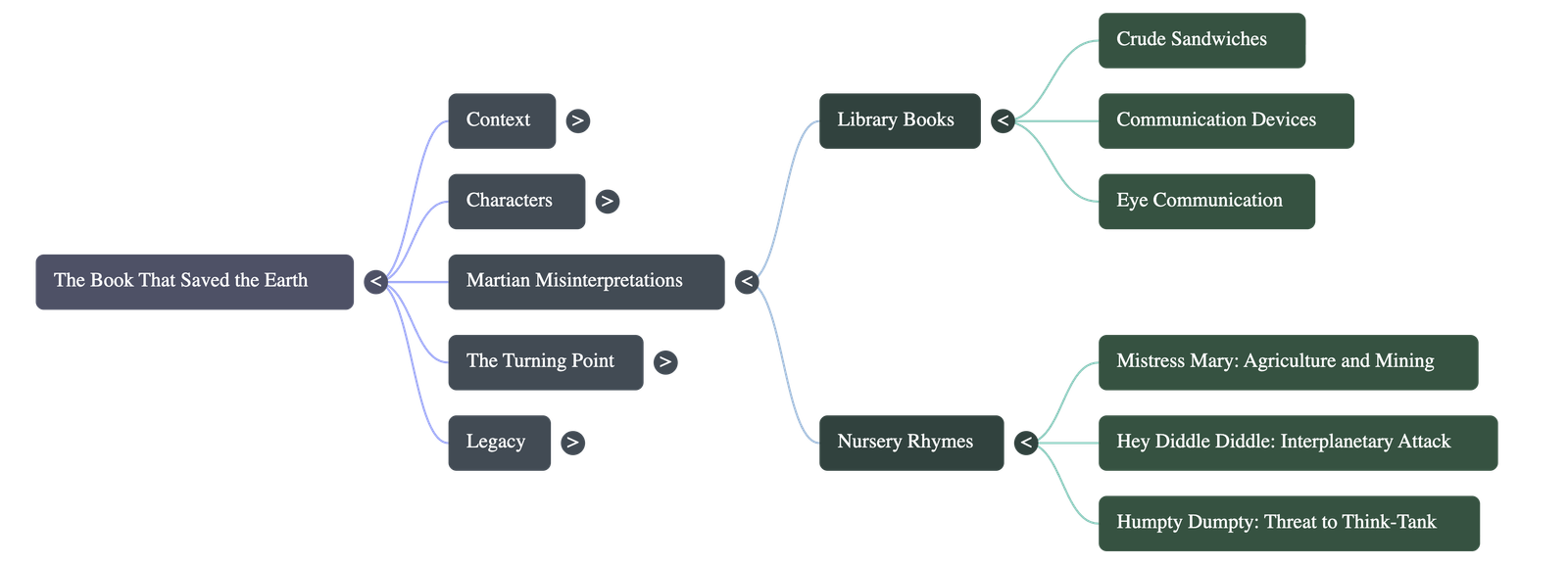 - Think-Tank confidently identifies books as "sandwiches," claiming they are the main staple of the Earthling diet.