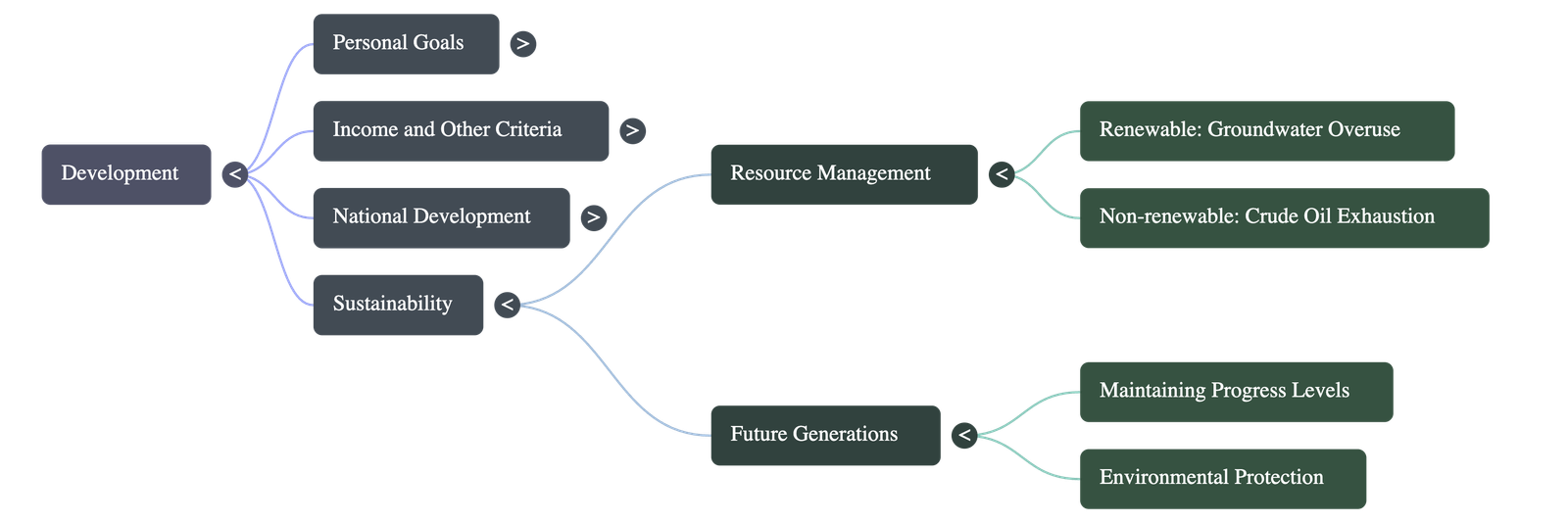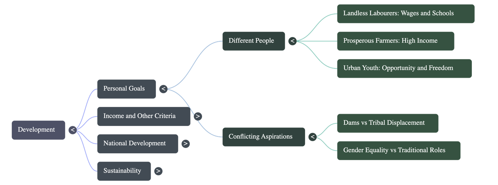 - Conflicting Goals: Sometimes, the development goals of one person may be destructive for another. For example, industrialists may want dams for electricity, but this can displace tribal people and submerge their land.