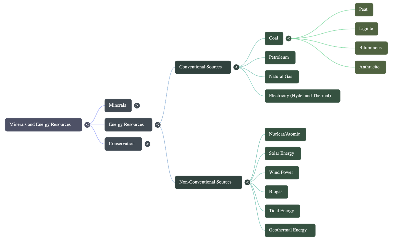 - Nuclear/Atomic Energy: Generated by altering the structure of atoms (Uranium and Thorium). Major reserves in Jharkhand, Rajasthan, and Kerala (Monazite sands).