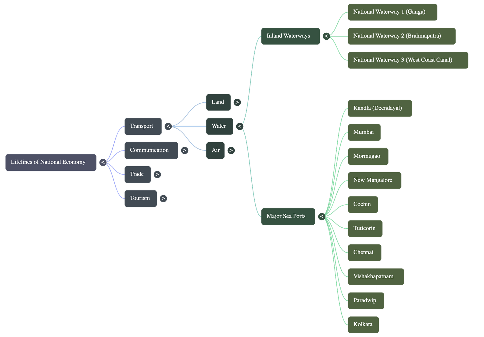 - Inland Waterways: India has 14,500 km of navigable waterways. Major National Waterways (NW) include: