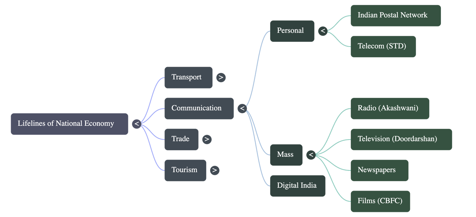 - Personal vs. Mass Communication: Includes post, telegraph, telephone, wireless, films, radio, TV, etc.