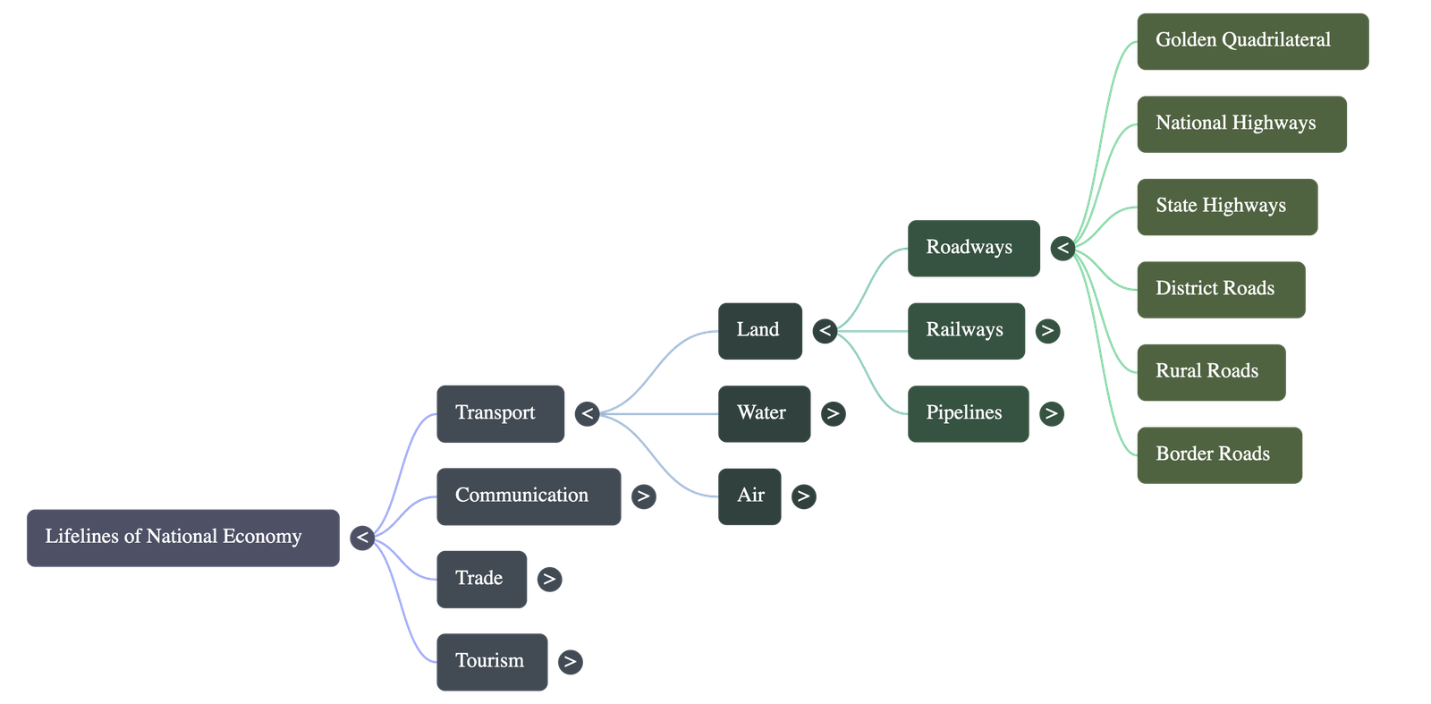 - Other Roads: Rural roads linking villages to towns. Received impetus under the Pradhan Mantri Grameen Sadak Yojana to provide all-weather motorable connectivity to every village.