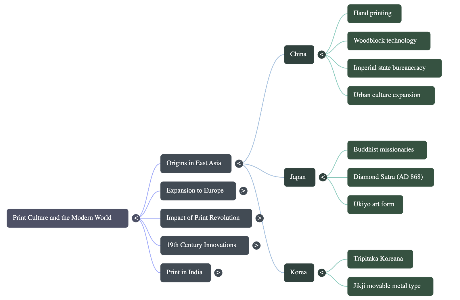 - Origins in East Asia: The earliest print technology was developed in China, Japan, and Korea as a system of hand printing.