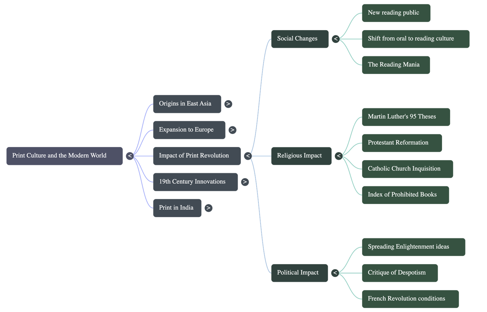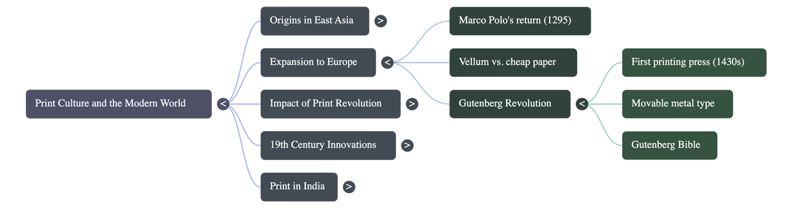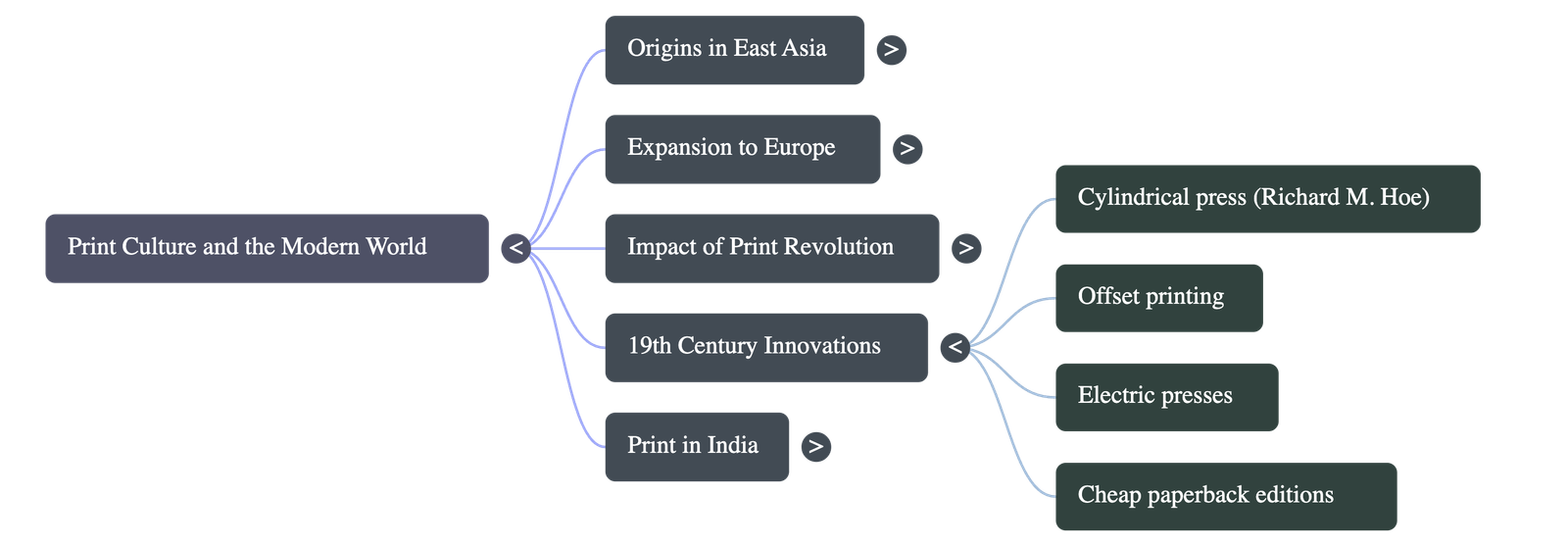 - The Print Revolution: The shift from hand printing to mechanical printing reduced the cost of books and increased production speed, leading to a flood of books in the market.